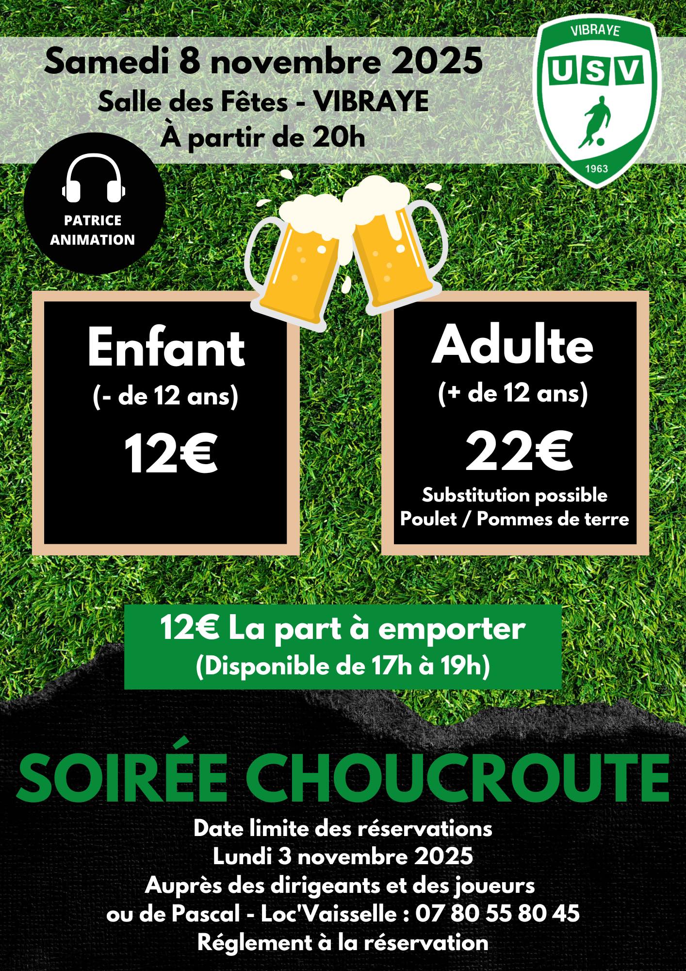 Je vous donne rendez vous le samedi 8 novembre 2025 à 20h pour la soirée de L'US VIBRAYE à la salle des fêtes de Vibraye (72)