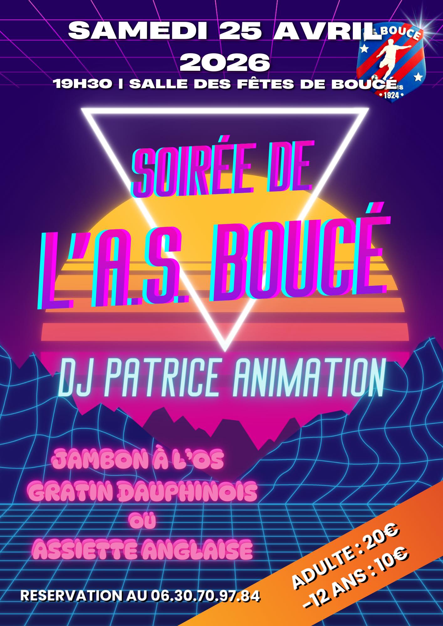 Actualité publiée le sam 14 mars 2026 Je vous donne rendez vous le samedi 25 avril 2026 à 19h30 pour la soirée de L'AS BOUCE à la salle des fêtes de Boucé (61) Repas dansant - Réservation au 06 30 70 97 84 ou auprès des dirigeants et des joueurs.